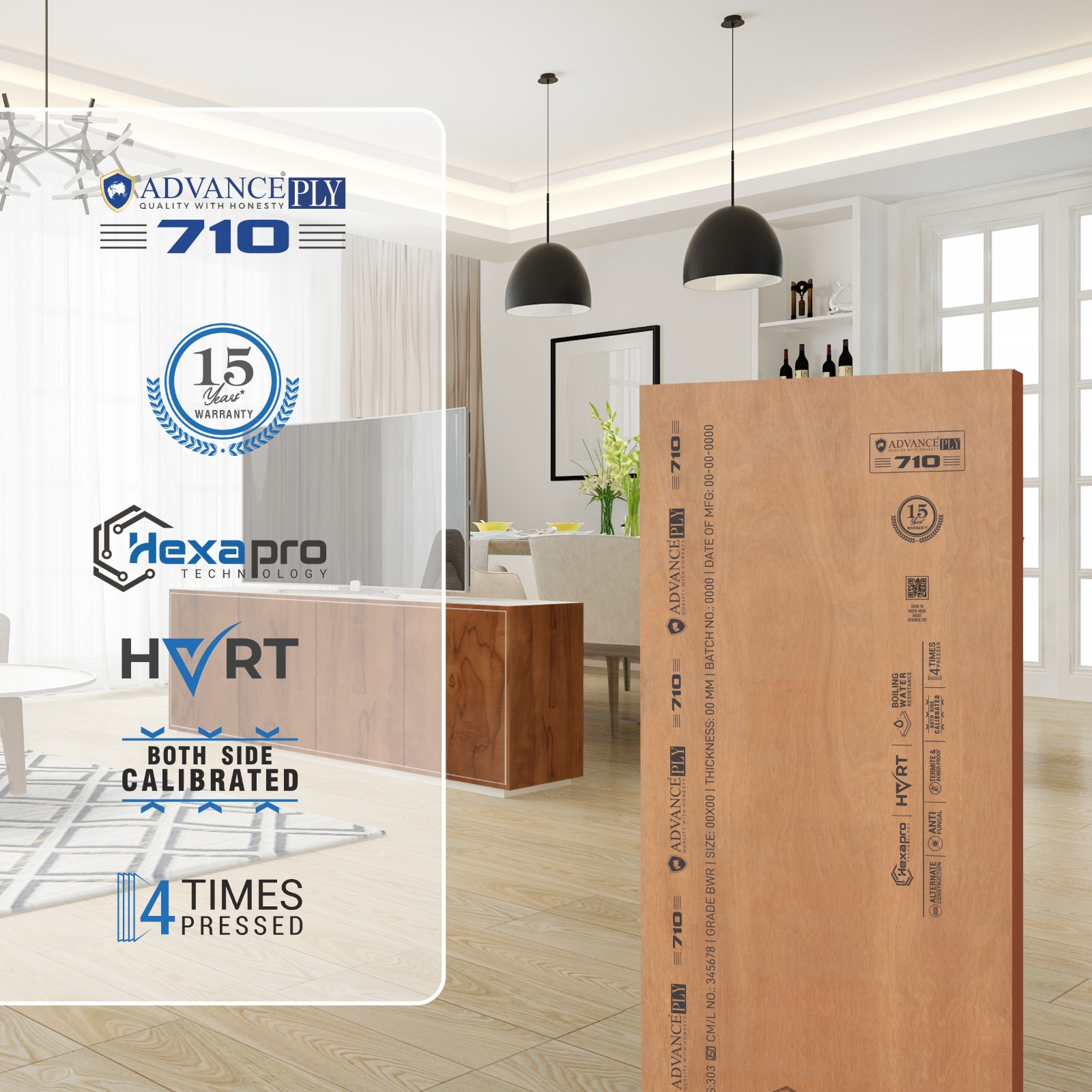 AdvancePly 710 is designed to deliver superior performance for interior applications, offering a perfect balance of strength and reliability. Crafted with HexaPro Technology and enhanced with advanced treatments, it ensures long-lasting durability. Its refined Okoume face and precision calibration provide a smooth, elegant finish, making it a dependable choice for creating functional and aesthetically pleasing interiors.