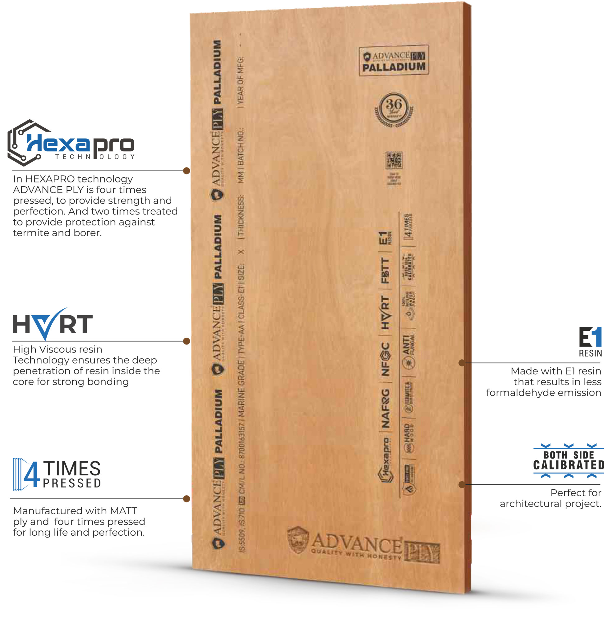 MADE WITH E1 GRADE RESIN, BOILING WATER PROOF, MARINE GRADE, IS:710, FULLY HARDWOOD CONSTRUCTION