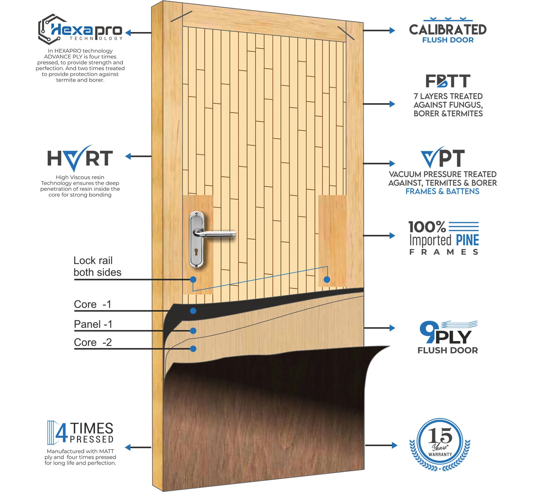 Flush doors comes with bunch of benefits that’s why they are preferred choice for modern building projects. They are not only lightweight but also strong, super easy to install and need a very little maintenance. Additionally, their smooth surface makes it a breeze to paint, laminate or coating which boost your interior style. As one of the trusted flush doors manufacturers we assure that their product provides great sound insulation and a long lifespan.