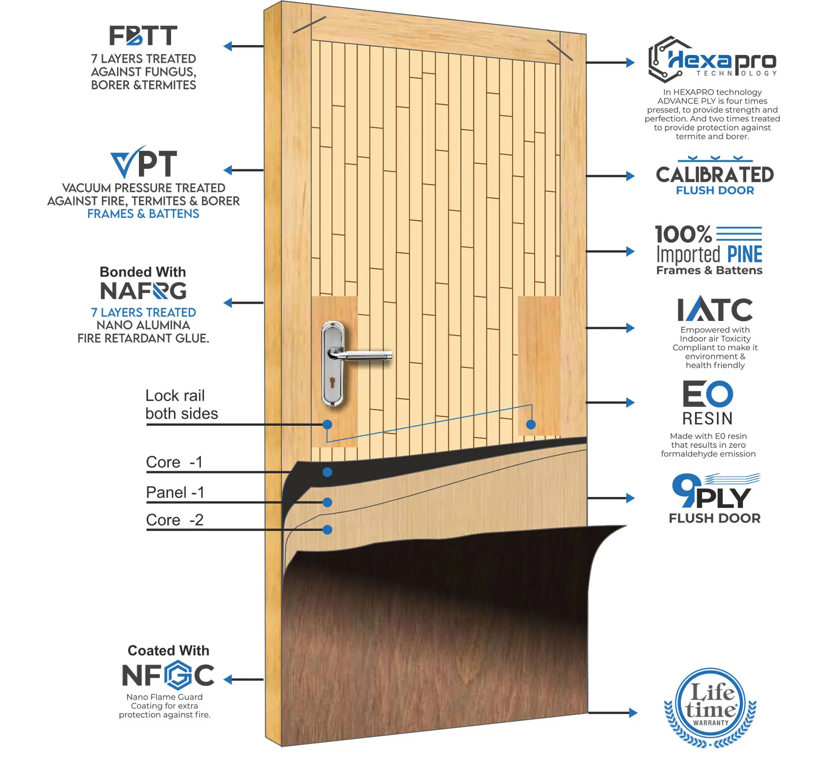 To assess the quality of flush doors, look at the smoothness of the surface, the strength of the core, how well they resist moisture, consistency in thickness, and whether they meet certification standards. Advance Plywood conducts thorough quality checks to provide you with durable, top-notch flush doors.
